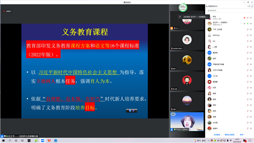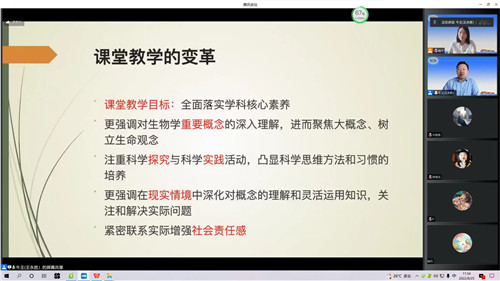 本次研訓(xùn)活動通過網(wǎng)絡(luò)平臺,線上完成專家講座、專題培訓(xùn)、小組交流研討、課例分析、案例分析等。本次培訓(xùn)邀請了四位專家,25日上午東北師范大學(xué)教授王永勝,做了《義務(wù)教育生物學(xué)課程標準(2022年版)幾個特點解析》的講座。25日下午人民教育出版社生物室主任譚永平,做了《落實義務(wù)教育課程標準(2022年版)的教學(xué)實施》的講座。26日上午,遼寧師范大學(xué)教授那杰,做了《素養(yǎng)領(lǐng)航銜接為重——淺談2022版義務(wù)教育生物學(xué)課程標準的課程理念》的講座。26日下午沈陽師范大學(xué)教授史立平,做了《解讀義務(wù)教育課程標準(2022年版)及其實施策略》的講座。四位專家的講座從不同角度為骨干教師解讀了義務(wù)教育生物課程標準(2022年版),并提出落實義務(wù)教育生物課程標準(2022年版)的教學(xué)實施建議。