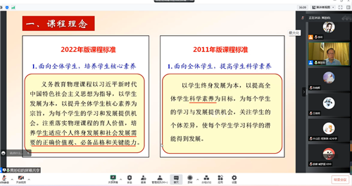 兩位國培專家從上位的視角對2022版義務(wù)教育物理課程標準的課程理念、目標、內(nèi)容及學(xué)業(yè)質(zhì)量等方面做了深刻而全面的解讀;兩位省培專家分別從中觀和微觀的視角結(jié)合詳實的案例講解了新課標理念下的教學(xué)思考與教學(xué)實踐。參訓(xùn)老師全面系統(tǒng)地了解了2022版義務(wù)教育物理課程標準的理念與內(nèi)涵;明確了以學(xué)科育人為導(dǎo)向的教學(xué)策略;掌握了基于目標導(dǎo)向的單元教學(xué)設(shè)計做法。從理念到策略、從策略到做法,參訓(xùn)教師的教育教學(xué)理念得到了系統(tǒng)、全面而具體的優(yōu)化與升級。