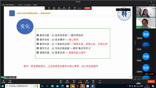 本次培訓對課改和課標的理念,項目學習的模式,各模塊內(nèi)容的細化、教學實施落實,進行了全面的培訓,做到了與國際接軌,提升了大連教師項目設(shè)計的水平。省教研員趙老師對大連小學信息科技取得的成績給予了高度評價,同時對課程方案和課程標準做了深入的分析和解讀,有理論、有案例,有方法、有高度,對我市進一步的教學實施提出了要求和期望。此外,劉志超和于宏洋老師對課表內(nèi)容進行細化,對本體知識進行了深入講解。