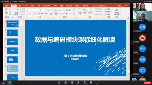 本次培訓先后邀請了《中國教育信息化》創(chuàng)客教育研究中心秘書長、國際StarT中國區(qū)主任、教育部首批國培專家孫曉奎做《新課標視域下跨學科課程實施路徑研究與實踐》講座;遼寧教育學院信息科技教研員趙春芝做《促進學生核心素養(yǎng)發(fā)展的信息科技教學思考與實施建議》專題講座;大連市信息科技研訓教師張楊做《課程標準解讀、細化與具體落實》培訓;甘井子區(qū)教師進修學校劉志超老師做《算法教學案例—關(guān)于算法與程序的思考》《數(shù)據(jù)與編碼模塊課標細化解讀》講座;西崗區(qū)白云新村于宏洋老師做《課標細化解讀—生活中的算法》培訓。