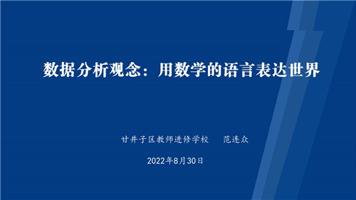 30日下午,大連市甘井子區(qū)數(shù)學(xué)教研員范連眾博士結(jié)合區(qū)域教研、教學(xué)指導(dǎo)的經(jīng)驗(yàn),以《數(shù)據(jù)分析觀念》為主題,從由意識(shí)到觀念、由部分到整體、由被動(dòng)到主動(dòng)、由習(xí)慣到到創(chuàng)新四個(gè)方面做了深入細(xì)致的剖析。范老師結(jié)合3個(gè)具體的課例,讓我們真正的教會(huì)學(xué)生一些統(tǒng)計(jì)的知識(shí),學(xué)會(huì)統(tǒng)計(jì)的方法,感知大數(shù)據(jù)時(shí)代學(xué)會(huì)數(shù)據(jù)分析的重要性,養(yǎng)成重證據(jù)、講道理的科學(xué)態(tài)度。