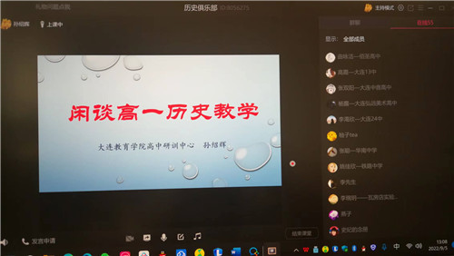 按照上級主管部門的要求,本次高一歷史全員培訓(xùn)活動仍然采取網(wǎng)上直播的形式進(jìn)行,廣大高一歷史教師積極參加。