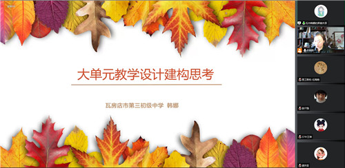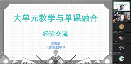 葉曉輝老師結合近期新課標新理念學習及“云課堂單元知識建構”實踐產(chǎn)生的疑問,細談了單元課程建構的意義,之后邀請大連市第二十二中學諶洪亞老師和瓦房店市第三初級中學韓娜老師交流了她們在單元課程建構學習后的實踐與思考,同時葉曉輝老師結合本地與異地教師實踐案例,詳細分析了單元課程建構的核心和關鍵。最后提出單元課程建構的幾點建議,鼓勵大家盡快投入研究與實踐,關注立德樹人,落實好核心素養(yǎng)下的課程設計與實施。