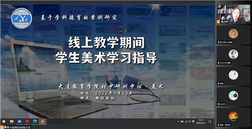 該活動是2022年度學科德育案例研究主題系列研訓活動的第四次活動,由大連教育學院初中研訓中心美術研訓教師葉曉輝主持。首先葉曉輝老師結合疫情宅家學習期間的線上巡課做了線上學生美術學習指導,之后進入專題系列教研。