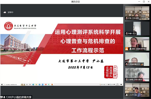 為了繼續(xù)深入貫徹落實大連市教育局《關(guān)于加強中小學(xué)生心理危機干預(yù)工作的通知》,9月13日,德育心理研訓(xùn)中心在騰訊會議線上開展了主題為“運用心理測評系統(tǒng)科學(xué)開展心理普查與危機排查實操培訓(xùn)”的心理教研活動,系統(tǒng)指導(dǎo)學(xué)校科學(xué)開展心理普查與危機排查工作,全市高中心理測評系統(tǒng)的超級管理員、專兼職心理教師及各區(qū)縣心理教研員共105人次參與了本次教研活動。