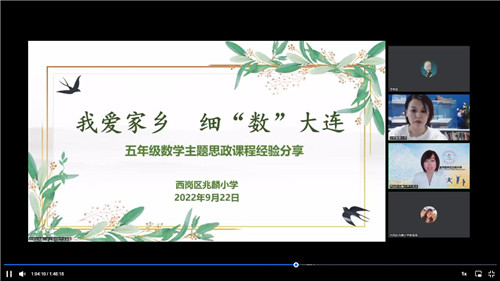 會(huì)上,首先由李老師向大家介紹了我市小學(xué)數(shù)學(xué)學(xué)科德育工作的背景和課程思政的推進(jìn)建設(shè)情況。接下來分別由來自沙河口區(qū)新建小學(xué)的孫圓圓副校長(zhǎng)、孫玥林主任和來自西崗區(qū)兆麟小學(xué)的王英杰主任、郭瑩瑩老師,先后進(jìn)行了匯報(bào)交流。沙河口區(qū)新建小學(xué)將課內(nèi)與課外作為落實(shí)核心素養(yǎng)的兩大方向,立足學(xué)生核心素養(yǎng)的發(fā)展,在課程建構(gòu)中踐行育人理念,將學(xué)科教學(xué)與學(xué)科育人融為一體。西崗區(qū)兆麟小學(xué)深入挖掘教材中已有的思政元素,并主動(dòng)尋找貼近學(xué)生生活實(shí)際的現(xiàn)實(shí)素材,整理創(chuàng)編了本校特有的數(shù)學(xué)思政課程《我愛家鄉(xiāng)細(xì)“數(shù)”大連》,將思政教育融合在數(shù)學(xué)課程教學(xué)中,充分體現(xiàn)了“課程思政”理念。“數(shù)學(xué)為本,育人為魂”。兩所學(xué)校的匯報(bào)交流讓參會(huì)教師對(duì)數(shù)學(xué)學(xué)科的育人作用有了更進(jìn)一步的認(rèn)識(shí)。