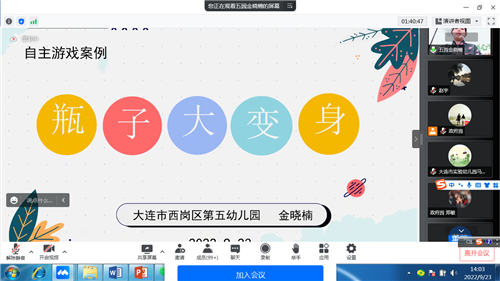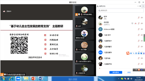 9月23日下午,“幼兒自主性發(fā)展實(shí)踐研究專題組”通過騰訊會(huì)議平臺(tái)召開了“基于幼兒自主性發(fā)展的教育支持”主題教研活動(dòng)。活動(dòng)由學(xué)前研訓(xùn)中心趙宇主持,相關(guān)教研員、園長和幼兒園教師百余人參加。