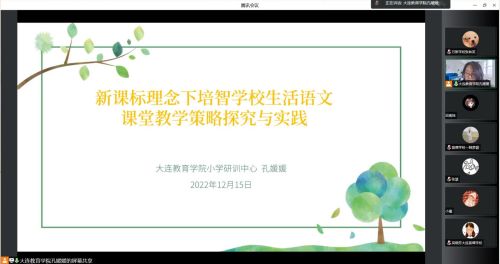 12月15日下午,特殊教育“新課標理念下培智學校生活語文課堂教學策略探究與實踐”主題教研活動通過騰訊會議召開。本次活動由學院小學研訓中心特殊教育教研員孔媛媛主持,全市各特殊教育學校教學負責人及生活語文教研組長參加了本次活動。