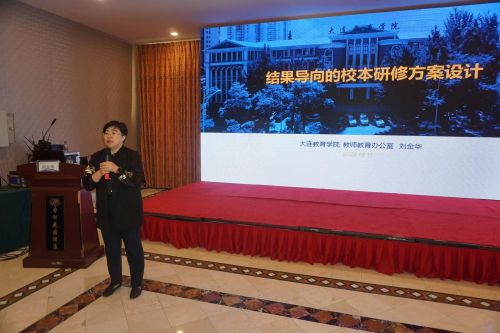 在理論研修模塊,學員們認真聆聽了兩場精彩紛呈的專家講座。首先,大連教育學院教師辦主任劉金華帶來《結果導向的校本研修方案設計》講座。劉主任從學校教學管理頂層設計的角度,聚焦校本研修方案的設計,從背景、原因、策略三方面系統(tǒng)深入地闡釋了采用逆向思維理念設計校本研修方案的思路及具體操作策略,重點解讀了研修方案設計的九大核心要素——研修對象、研修主題、研修目標、研修課程、研修成果、研修師資、研修管理、研修經費,讓結果導向的校本研修引領教學管理的強化。