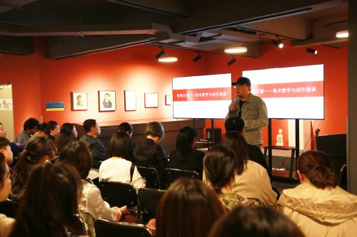 活動中,教師們走進身邊的美術(shù)館,欣賞學習藝術(shù)家的作品原作,開闊了藝術(shù)視野,激發(fā)了專業(yè)創(chuàng)作的熱情,提高了對美術(shù)作品的欣賞能力。趙胥校長在講座中首先解讀了出自論語的“繪事后素”的含義,具體到現(xiàn)在指的是創(chuàng)作先要有扎實的專業(yè)功底,接著結(jié)合中考高考試題,尤其是速寫考試,考題是建立在《拾穗者》《韓熙載夜宴圖》等中外經(jīng)典美術(shù)作品的基礎上去創(chuàng)作的。這與藝術(shù)核心素養(yǎng)中的“文化理解與傳承”以及新課標提出的“像藝術(shù)家一樣思考”的理念,做出生動而具體的詮釋。魯毅老師指出本次活動的意義,作為美術(shù)教師絕不可以停止自己專業(yè)知識與技能的學習與追求,同時要開闊藝術(shù)眼界,全面提升自己的專業(yè)素質(zhì)與修養(yǎng),才能更好地從事美術(shù)教育教學工作。