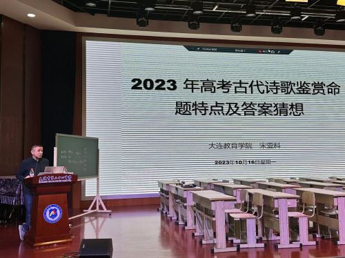 活動(dòng)的第三部分是由學(xué)院高中研訓(xùn)中心語(yǔ)文研訓(xùn)教師宋亞科做“2023年高考古代詩(shī)歌鑒賞命題特點(diǎn)及答案猜想”講座。講座首先概括了2023年四首全國(guó)卷上所選詩(shī)歌的特點(diǎn),并分析命題的基本規(guī)律與特點(diǎn),然后從甲卷開始,逐首進(jìn)行了詳盡的解讀,解讀中,從教師備考的角度,重點(diǎn)強(qiáng)調(diào)了讀懂詩(shī)歌的幾個(gè)重要方法,與教師交流了讀懂詩(shī)歌的幾個(gè)感受。