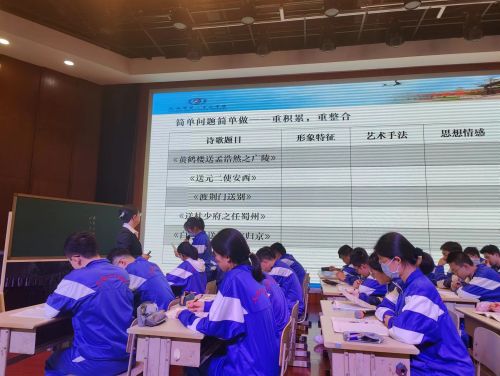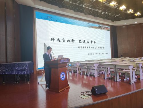 10月16日下午,教研活動(dòng)在大連二十四中學(xué)明德二樓大禮堂拉開帷幕。本次活動(dòng)由三個(gè)部分組成。第一部分是由大連二十四中學(xué)高三備課組長(zhǎng)王丹老師,做題為“行遠(yuǎn)自教材致遠(yuǎn)必素養(yǎng)”的講座,講座中,王老師結(jié)合二十四中備課組復(fù)習(xí)備考的做法,定位于“穩(wěn)基礎(chǔ):夯基礎(chǔ),重積累,教考結(jié)合”,對(duì)近三年來(lái)全國(guó)高考語(yǔ)文試題進(jìn)行了概括性的評(píng)價(jià),然后結(jié)合《課程標(biāo)準(zhǔn)》上有關(guān)學(xué)習(xí)質(zhì)量水平描述與“文學(xué)閱讀與寫作”學(xué)習(xí)任務(wù)群的要求與精神,結(jié)合教材必修上第三單元、選必下第一單元的共十四首詩(shī)歌,系統(tǒng)地闡述了如何“穩(wěn)基礎(chǔ)”“重素養(yǎng)”,強(qiáng)調(diào)要重視單篇積累,讓學(xué)生梳理總結(jié)必修上第三單元和選必下第一單元詩(shī)歌單元的知識(shí)點(diǎn)(誦讀單元):詩(shī)歌內(nèi)容、藝術(shù)形象、藝術(shù)構(gòu)思、思想情感等,并結(jié)合22年全國(guó)甲卷李白《送別》的詩(shī)歌題C項(xiàng)中“本詩(shī)最后兩句的表達(dá)方式,在《黃鶴樓送孟浩然之廣陵》中也曾使用”作為課例,對(duì)教材的基礎(chǔ)的重要性進(jìn)行了說(shuō)明;接著,王老師指出,簡(jiǎn)單問(wèn)題簡(jiǎn)單做——重積累,重整合,要重視比較關(guān)聯(lián)、重視知識(shí)歸納。最后,王老師指出,古代詩(shī)歌的閱讀要抓住有效信息,也要明確文體特征,發(fā)現(xiàn)并理解鑒賞特殊性,認(rèn)真閱讀題目要求,審清題目意圖,明確情境任務(wù)。在具體的備課組備考重力方面,王老師強(qiáng)調(diào)了兩點(diǎn),一是注重學(xué)生個(gè)體差異,分層導(dǎo)練,二是要吃透教材,明確教材中的鑒賞任務(wù)、評(píng)價(jià)任務(wù)與寫作任務(wù)。活動(dòng)的第二部分是王老師親自執(zhí)教的觀摩課“高考詩(shī)歌復(fù)習(xí)備考中教考結(jié)合的探究”,課堂上,王老師設(shè)置了三個(gè)學(xué)習(xí)任務(wù),與學(xué)生一起通過(guò)自讀、思考、對(duì)話、小組合作的方式,從歸納近三年高考詩(shī)歌鑒賞題教改結(jié)合的顯性形式,思考教考結(jié)合的外在形式下,高考試題考查了詩(shī)歌鑒賞的哪些相關(guān)知識(shí)點(diǎn)到最后結(jié)合送別詩(shī),探究教考結(jié)合的備考切入點(diǎn),讓學(xué)生利用所學(xué)所思的鑒賞方法,解決全國(guó)卷中的幾個(gè)有代表性的鑒賞題目。