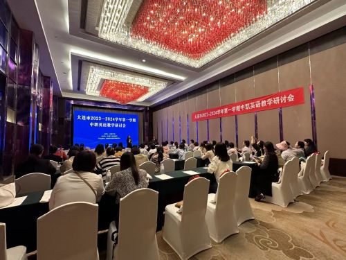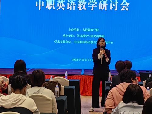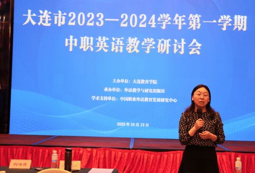 10月13日,由大連教育學院主辦,外語教學與研究出版社承辦的大連市2023-2024學年第一學期中職英語教學研討會在凱賓斯基酒店隆重舉行。本次活動由職成教研訓中心于紅老師主持,中職英語課標研制組副組長王篤勤教授、課標研制組核心成員劉海霞老師到會并做專題講座,全市各中職學校七十余名英語教師參加了本次研討會。本次教研共有四項議程:專家講座、課例展示、專家評析和教材使用建議。