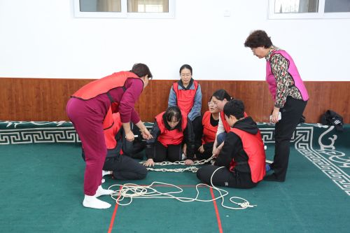 活動(dòng)伊始,韓老師用抓手指和大小風(fēng)吹兩個(gè)熱身活動(dòng)活躍氣氛,使得每位老師都洋溢著幸福的笑容。“我的團(tuán)隊(duì)我的家”活動(dòng)中,四位組長帶領(lǐng)組員取隊(duì)名、編口號(hào)并繪制屬于本組特色的“名片”,“紅蘋果”隊(duì)、“fasola”隊(duì)、“星辰大海”隊(duì)和“桃花多多開”隊(duì)分別展現(xiàn)各自特色,凝煉團(tuán)隊(duì)。“渾水摸棋”這個(gè)富有挑戰(zhàn)性的活動(dòng),用集體的智慧編織成一張承載信任的網(wǎng)。全隊(duì)成員齊心協(xié)力一次次完成挑戰(zhàn)任務(wù),取得佳績。