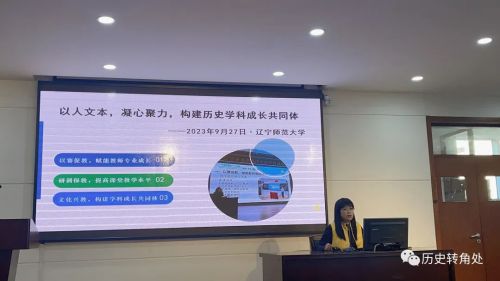 會議的第三部分為講座環(huán)節(jié)。大連市第八中學(xué)任俊琴老師圍繞《高中歷史新教材問題探究》,進(jìn)行了精彩的歷史講座。任老師從新教材的具體內(nèi)容入手,強(qiáng)調(diào)了歷史教學(xué)中對教材文本的重視與梳理、對必修和選擇性必修內(nèi)容的取舍、對相關(guān)學(xué)術(shù)知識的積累等問題。在講座的最后,任老師向在座各位高一歷史教師推薦了《簡明中國歷史讀本》《簡明中國近代史讀本》《簡明世界歷史讀本》這三本書籍,幫助大家進(jìn)一步提高歷史教學(xué)水平。