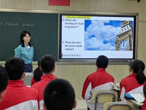 首先鐵路中學(xué)的連冰老師做了必修一第四單元Friendsforever第一課時(shí)的示范課。連冰老師通過(guò)精彩細(xì)致的設(shè)計(jì),不但完整地呈現(xiàn)了教材中的六個(gè)活動(dòng),而且引領(lǐng)學(xué)生從學(xué)習(xí)理解類向應(yīng)用實(shí)踐類和遷移創(chuàng)新類活動(dòng)不斷推進(jìn),從而幫助學(xué)生思維從低價(jià)向高階思維地提升,使英語(yǔ)學(xué)科素養(yǎng)得到了具體而生動(dòng)的落實(shí)。教室里不但學(xué)生興趣盎然,觀課老師也被連冰老師精彩展示所感染,他們不但積極參與了現(xiàn)場(chǎng)UMU系列問(wèn)卷,而且給這節(jié)課打出了9.8分的絕對(duì)高分。