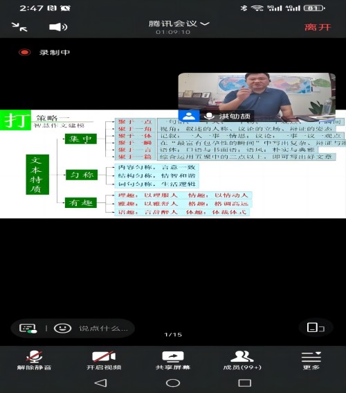 鄭淑清在總結(jié)發(fā)言中,強調(diào)本次講座在理論層面闡釋了智慧語文的內(nèi)涵,在實踐層面貢獻了閱讀和寫作教學的智慧,在具體內(nèi)容方面提供了豐富的教育資源,在成果層面推介了一個重要的成果展示平臺。期望全體學員借助“新課程、新教材、新高考”的東風,在本單位乃至本區(qū)域語文教育課改領(lǐng)域內(nèi)具備理論和實踐的雙重引領(lǐng)能力,承擔起發(fā)揮示范作用的使命。