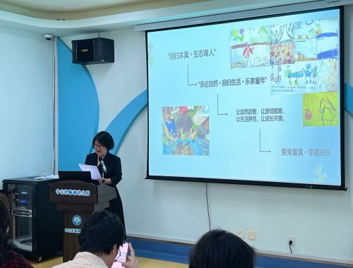根據(jù)2023年大連市學(xué)前研訓(xùn)工作計(jì)劃安排和大連市“安吉游戲推廣實(shí)施”項(xiàng)目工作推進(jìn)計(jì)劃要求,為進(jìn)一步指導(dǎo)區(qū)縣和安吉游戲優(yōu)秀幼兒園深入開展安吉游戲研究,促進(jìn)“安吉游戲推廣實(shí)施”項(xiàng)目落地轉(zhuǎn)化,10月26日上午,學(xué)前研訓(xùn)中心在中山區(qū)春海幼兒園開展了大連市“安吉游戲推廣實(shí)施”項(xiàng)目研究第二次專題教研活動(dòng),此次教研活動(dòng)主要圍繞戶外自主游戲與幼兒運(yùn)動(dòng)量的平衡等內(nèi)容開展。活動(dòng)由學(xué)前研訓(xùn)中心朱璟老師組織,學(xué)前研訓(xùn)中心主任茅茵、邵日芳老師、各區(qū)縣學(xué)前研訓(xùn)部主任、教研員及29所安吉游戲優(yōu)秀園所負(fù)責(zé)人和教師代表共計(jì)80余人參加了活動(dòng)。