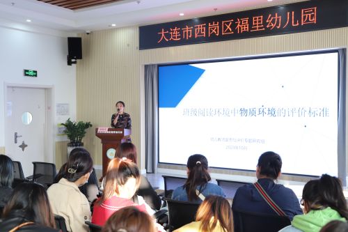 10月25日上午,學(xué)前研訓(xùn)中心在大連市西崗區(qū)福里幼兒園組織開(kāi)展“幼兒教師反思與評(píng)價(jià)”主題化系列化教研活動(dòng)。活動(dòng)主題為“班級(jí)閱讀環(huán)境中物質(zhì)環(huán)境的評(píng)價(jià)標(biāo)準(zhǔn)”,由徐銘澤老師組織,基地園園長(zhǎng)、教師核心成員65人參加了活動(dòng)。