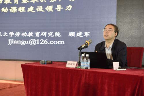 開幕式結(jié)束后,教育部《義務(wù)教育勞動課程標(biāo)準(zhǔn)》研制組組長、教育部長江學(xué)者獎(jiǎng)勵(lì)計(jì)劃特聘教授、南京師范大學(xué)教育科學(xué)學(xué)院院長顧建軍教授做了題為《聚焦勞動育人,建設(shè)勞動課程》的專題報(bào)告。