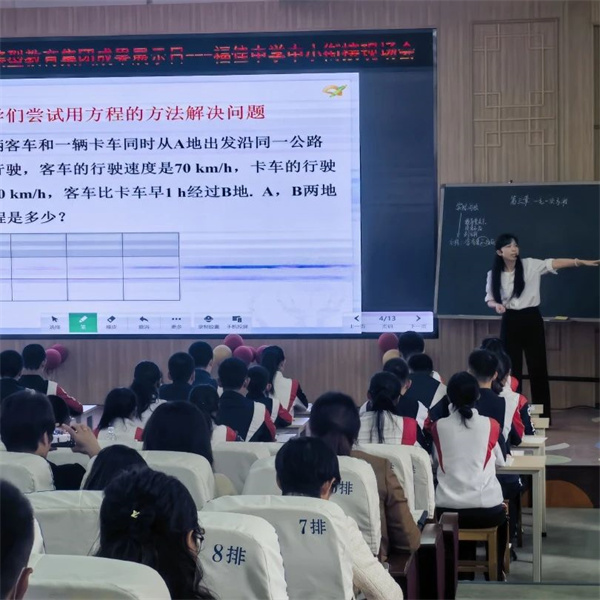 金地小學(xué)馮馨冉老師執(zhí)教《大豆中的營養(yǎng)含量》數(shù)學(xué)教學(xué)展示課,福佳中學(xué)李躍老師現(xiàn)場展示了《一元一次方程》課堂教學(xué)。中小學(xué)兩節(jié)數(shù)學(xué)課,都注重運用應(yīng)用性閱讀的"五步法",引導(dǎo)學(xué)生審題、分析,構(gòu)建知識之間的聯(lián)系,從而解決實際問題。