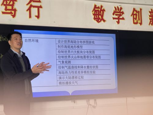 在講座環(huán)節(jié),大連市初中地理研訓教師吳凱老師深入探討了地理實驗教學的意義和實施方式。從實驗設計、實驗準備、實驗操作、實驗評價四個方面入手,為教師們提供了一整套實驗教學的實施策略。他還分享了一些成功的實驗教學案例,為其他教師提供了寶貴的參考。