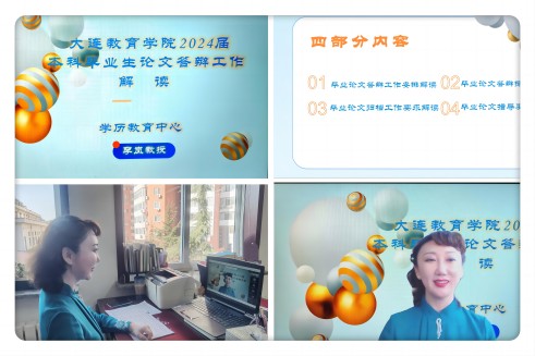 為貫徹落實(shí)教育部《關(guān)于推進(jìn)新時(shí)代普通高等學(xué)校學(xué)歷繼續(xù)教育改革的實(shí)施意見》(教職成【2022】2號)文件精神,嚴(yán)格落實(shí)畢業(yè)答辯及審核環(huán)節(jié)要求,進(jìn)一步規(guī)范和推進(jìn)大連教育學(xué)院本科畢業(yè)生論文答辯工作,2023年11月13日上午,大連教育學(xué)院學(xué)歷教育中心組織開展了2024屆《本科畢業(yè)生論文答辯工作解讀》主題研訓(xùn)活動暨本科畢業(yè)生論文答辯中期工作培訓(xùn)會。學(xué)歷教育中心本科生論文指導(dǎo)教師及專業(yè)負(fù)責(zé)人、各教學(xué)點(diǎn)本科生論文指導(dǎo)教師及教學(xué)主任、2024屆本科畢業(yè)生代表40余人齊聚云端參加了此次活動。