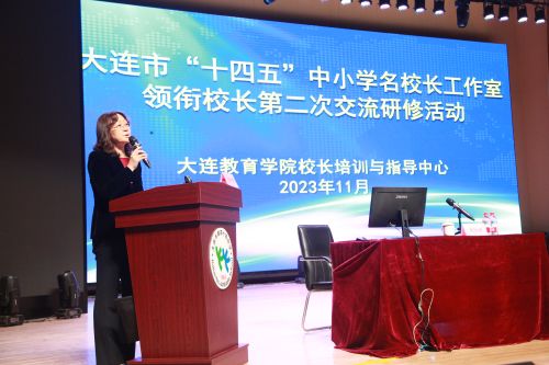 研修活動中,學(xué)院副院長趙妤婕作了主旨發(fā)言,她回顧了大連市名校長工作室自去年11月份正式頒牌以來的活動情況,肯定了大連市名校長工作室一年以來對于入室成員校長專業(yè)發(fā)展的作用,并對于工作室未來發(fā)展給出了幾點(diǎn)中肯建議,一是名校長工作室要繼續(xù)發(fā)揮校長互助學(xué)習(xí)發(fā)展共同體作用,二是名校長工作室要加強(qiáng)科研引領(lǐng),三是名校長工作室要多渠道增加對外展示與輻射力度,四是名校長工作室還要適時開展中期檢查加強(qiáng)管理。