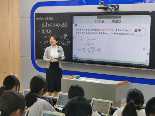 大連教育學(xué)院附中劉玉瑩老師上了《質(zhì)譜儀與回旋加速器》一課。本課選擇磁場與現(xiàn)代科技相結(jié)合的主題,重點解決質(zhì)譜儀和回旋加速器兩個模型。劉老師在導(dǎo)學(xué)案的問題引導(dǎo)上精心設(shè)置,層層推進(jìn),讓學(xué)生思考如何利用所學(xué)知識選擇合適的物理規(guī)律,特別是對初速度不同的粒子,通過增加速度選擇器和靜電分析器,能夠讓比荷相同的粒子打在同一點,提高測量的精確度,真正體現(xiàn)了利用所學(xué)知識解決物理問題。合理改編高考試題,在新情境中應(yīng)用知識解決回旋加速問題。學(xué)生利用PAD上傳預(yù)習(xí)和自主檢測的解答情況,教師利用PAD快速統(tǒng)計正答率,進(jìn)行精準(zhǔn)答疑,并通知PAD拍照上傳學(xué)生學(xué)案,再用白板投屏,師生都能看清解答過程,非常方便,實現(xiàn)了信息技術(shù)與課堂教學(xué)的完美融合。