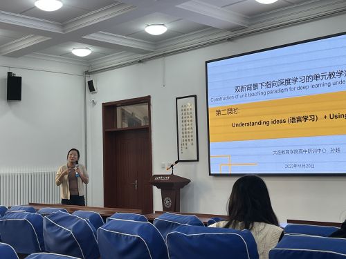 11月20日下午,大連市高一年級(jí)11月份英語教研活動(dòng)在大連市第十六中學(xué)如期舉行。本次研訓(xùn)活動(dòng)是英語學(xué)科系列化主題活動(dòng)《“雙新”背景下指向深度學(xué)習(xí)的單元教學(xué)范式建構(gòu)》的第二次活動(dòng),主要是向全市老師示范外研版新教材中第二課時(shí)“Understandingideas(語言學(xué)習(xí))和Usinglanguage(語法)”的處理方法和策略。
