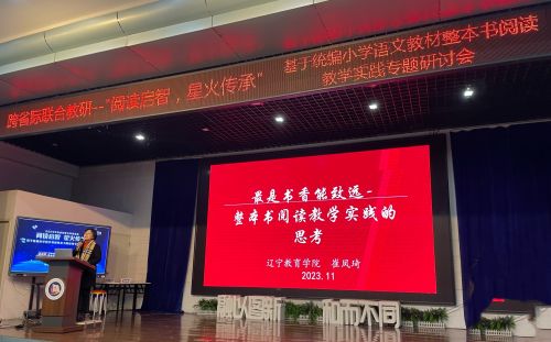 為貫徹落實《全國青少年學(xué)生讀書行動實施方案》,推進(jìn)義務(wù)教育課程方案和語文課程標(biāo)準(zhǔn)關(guān)于整本書閱讀課程化的有效實施,提高小學(xué)語文教師閱讀素養(yǎng)及教育教學(xué)能力,加強(qiáng)省際學(xué)科建設(shè)與研討交流,培養(yǎng)學(xué)生廣泛的閱讀興趣,12月1日至2日,由遼寧教育學(xué)院承辦的遼寧、海南、湖南三省省際間聯(lián)合教研活動——“閱讀啟智,星火傳承”小學(xué)整本書閱讀教學(xué)實踐專題研討會,于沈陽市望湖路小學(xué)召開。大連教育學(xué)院小學(xué)研訓(xùn)中心王舒老師帶隊,大連各區(qū)市縣研訓(xùn)教師及一線教師,共18人赴沈陽參會。