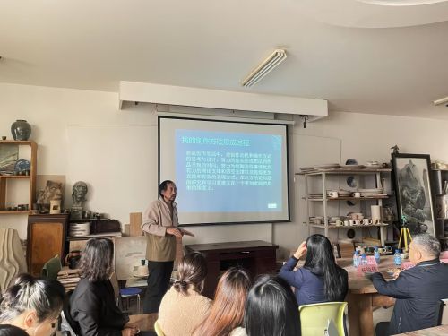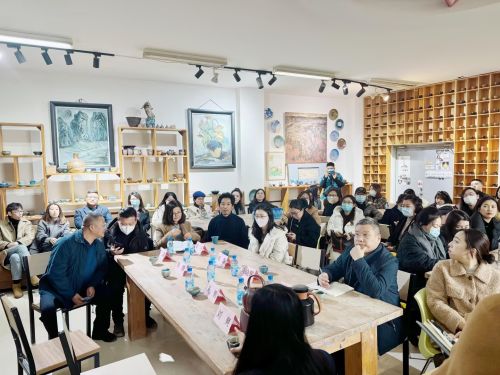 本次活動(dòng)內(nèi)容分兩部分,首先劉爽副校長(zhǎng)簡(jiǎn)短介紹了紅星海學(xué)校美育工作,之后全體與會(huì)人員先后參觀了紅星海學(xué)校美術(shù)教師領(lǐng)銜的陶瓷藝術(shù)工作室、繪畫(huà)表現(xiàn)工作室、染織藝術(shù)工作室、裝飾繪畫(huà)工作室、油畫(huà)工作室、工筆花鳥(niǎo)工作室和基礎(chǔ)繪畫(huà)工作室。老師們邊參觀邊問(wèn)詢交流,探討工作室對(duì)教師專業(yè)成長(zhǎng)與學(xué)生特長(zhǎng)形成的重要意義。之后由大連教育學(xué)院藝體勞研訓(xùn)中心初中美術(shù)研訓(xùn)教師葉曉輝主持,展開(kāi)主題論壇。主題論壇共分三個(gè)話題。一是金普新區(qū)初中美術(shù)教研員李莉老師交流分享區(qū)域陶藝、現(xiàn)代藝術(shù)、民間美術(shù)等校本課聯(lián)盟的實(shí)踐探索。二是陶藝校本課聯(lián)盟盟主劉長(zhǎng)文老師圍繞“紅星海學(xué)校工坊式美術(shù)課程建設(shè)”展開(kāi)陶瓷美學(xué)與美術(shù)學(xué)科教學(xué)主題分享。三是當(dāng)代藝術(shù)校本課聯(lián)盟盟主孫大志老師詳談“以美術(shù)發(fā)展史為線索的教學(xué)與創(chuàng)作”。與會(huì)教師在論壇結(jié)束后及時(shí)與主講教師互動(dòng)交流并表達(dá)自己的學(xué)習(xí)感受。