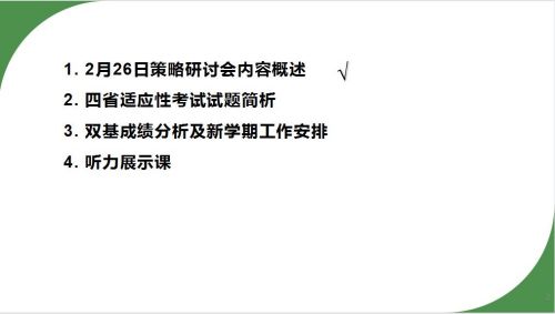 教研活動第二部分是由遼寧師范大學(xué)附屬高中的平靜老師做《GuidancetoInferenceQuestionsforEnglishListening》的展示課。這節(jié)課主要針對2023年遼寧高考英語聽力成績計(jì)入高考總分和2022年高考英語試題聽力部分加強(qiáng)了推理判斷題的比重的這兩個新變化。在這節(jié)課中平靜老師不但把推理判斷題進(jìn)行了更易于學(xué)生理解的分類和概括,而且在教學(xué)過程中注重以學(xué)生為主體,充分發(fā)揮了學(xué)生的主動性和創(chuàng)造性。整節(jié)課內(nèi)容充實(shí)扎實(shí),形式豐富多樣,是新課程理念指導(dǎo)新高考的一節(jié)精品示范課,給老師們帶來了全方位的思考,得到了觀課老師們的高度評價(jià)和一致認(rèn)可。