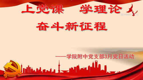 3月27日下午,依據(jù)學(xué)院黨委的工作部署,學(xué)院附中黨支部組織全體黨員同志在新時(shí)代黨員群眾講習(xí)所101室召開(kāi)了上黨課學(xué)理論奮斗新征程—3月份黨日活動(dòng),會(huì)議由黨支部書(shū)記林杉主持。