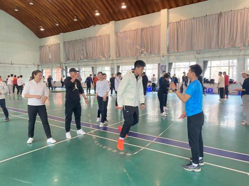 陽光正暖,春意正濃。根據(jù)加強(qiáng)新時(shí)代學(xué)校體育工作要求,為提高體育教師跳繩運(yùn)動(dòng)技能,加快教師隊(duì)伍專業(yè)化成長,同時(shí)夯實(shí)小學(xué)體育教師教學(xué)基本功,提升教師教學(xué)能力,2023年4月6日下午,主題為“基于學(xué)練賽評(píng)一體化的花樣跳繩技能與大單元教學(xué)設(shè)計(jì)”教研活動(dòng)在大連市實(shí)驗(yàn)小學(xué)舉行,本次活動(dòng)參加對(duì)象為花樣跳繩專業(yè)教師及參與省基本功大賽選拔的百余名教師。活動(dòng)共由花樣跳繩技能培訓(xùn)、教學(xué)基本功培訓(xùn)兩部分組成。花樣跳繩技能培訓(xùn)由第八屆體育教師教學(xué)技能比賽——民族傳統(tǒng)項(xiàng)目冠軍獲得者龍家宇等6人作為培訓(xùn)講師,培訓(xùn)內(nèi)容為個(gè)人花樣步伐、雙人車輪跳、多人交互繩。教師基本功培訓(xùn)由參加往屆大賽榮獲一等獎(jiǎng)的優(yōu)秀代表劉忠濤、林超和張珈睿作為指導(dǎo)教師,培訓(xùn)內(nèi)容為廣播體操和技巧組合。
