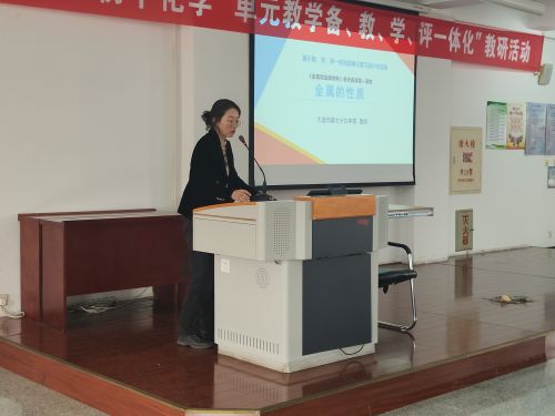 本次活動由市研訓教師馬智慧主持,研訓活動主題為基于“教學評”一體化的單元復(fù)習模式建構(gòu)及實施。研訓活動主要內(nèi)容:一是七十九中化學教研組匯報《金屬及金屬材料》單元復(fù)習設(shè)計,并輔以課例說明;二是馬智慧老師結(jié)合七十九中單元備課及教學實例進行講座。