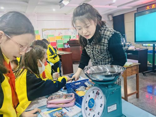 活動(dòng)開(kāi)始,由沙河口區(qū)興工小學(xué)趙潔老師和她的學(xué)生們?yōu)榇蠹規(guī)?lái)了《1克有多重》一課。趙潔老師首先明確本單元重在培養(yǎng)學(xué)生量感這一核心素養(yǎng),依據(jù)“新課標(biāo)”立足“舊教材”,將“千克、克、噸”這一單元?jiǎng)澐譃槲逭n時(shí),《認(rèn)識(shí)1克有多重》是本單元第二課時(shí),學(xué)生們通過(guò)稱(chēng)一稱(chēng)、掂一掂認(rèn)識(shí)1克有多重;通過(guò)掂一掂、估一估、稱(chēng)一稱(chēng)來(lái)尋找哪些物品約重1克,在這樣的活動(dòng)中,學(xué)生充分感受1克的質(zhì)量很輕,建立1克的質(zhì)量概念,又通過(guò)感受生活中較輕物品的質(zhì)量發(fā)現(xiàn)了1000克等于1千克這樣的等量關(guān)系。學(xué)生們?cè)谟H歷度量的過(guò)程中逐漸形成量感,在想象推理活動(dòng)中發(fā)展量感,在估測(cè)與對(duì)比中增強(qiáng)量感。