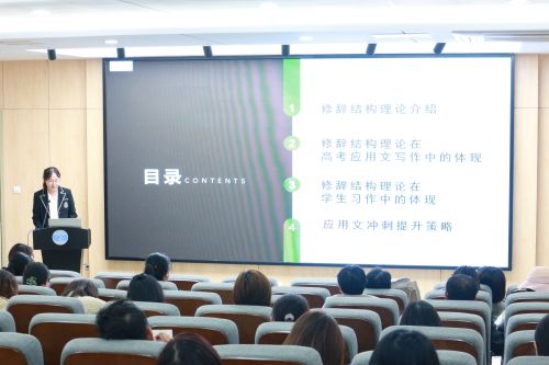 第一部分是大連市一模成績(jī)分析。首先由大連教育學(xué)院的孫越老師對(duì)一模考試成績(jī)進(jìn)行一個(gè)整體分析,對(duì)一模閱卷進(jìn)行一個(gè)簡(jiǎn)單的總結(jié)。然后將由大連市第三十六中學(xué)備課組組長(zhǎng)董霞老師結(jié)合學(xué)生的作答對(duì)試題進(jìn)行具體的分析。董霞老師的講座既有理論高度,又有數(shù)據(jù)分析和教學(xué)實(shí)踐,得到了與會(huì)老師的一致好評(píng)。第二個(gè)環(huán)節(jié)就是請(qǐng)教育學(xué)院附中備課組組長(zhǎng)姚咸如老師做二輪復(fù)習(xí)備考經(jīng)驗(yàn)交流。姚老師把4月11日在沈陽(yáng)舉行的省二輪復(fù)習(xí)備考會(huì)的四場(chǎng)講座和省教研員李靜老師的講座進(jìn)行二次提煉和總結(jié),同時(shí)結(jié)合自己的學(xué)情分享了自己的體會(huì)和感悟。第三個(gè)環(huán)節(jié)是開(kāi)發(fā)區(qū)一中的崔雪子老師做“利用修辭結(jié)構(gòu)理論提升應(yīng)用文備考”的講座。本次一模考試暴露出學(xué)生的應(yīng)用文寫作在要點(diǎn)完成度上不是很理想,崔老師的講座給老師們指導(dǎo)應(yīng)用文寫作帶來(lái)新的思路。