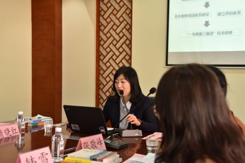 調(diào)研組一行首先就專項(xiàng)調(diào)研主題聽取了學(xué)校的匯報(bào),學(xué)校依照調(diào)研要求就校園歷史,教師隊(duì)伍建設(shè),落實(shí)“雙新”“雙減”課堂教學(xué),優(yōu)化作業(yè)設(shè)計(jì),校本研修,教學(xué)成果等方面進(jìn)行充分介紹。過程中,調(diào)研組了解到學(xué)校前身作為遼南地區(qū)第一座書院,歷史悠久。學(xué)校努力地將現(xiàn)代書院的文化之根融入到學(xué)校“培養(yǎng)家國棟梁、帶動(dòng)一方文明”的發(fā)展愿景中,融入到“振德育才”的辦學(xué)理念中。南金實(shí)驗(yàn)小學(xué)以“家國天下”為校訓(xùn),以“自強(qiáng)不息”為校風(fēng),以“春風(fēng)化雨”為教風(fēng),以“知行合一”為學(xué)風(fēng),致力于全人教育,努力培養(yǎng)人格健全、思想獨(dú)立、視野開闊的南金學(xué)子。南金實(shí)驗(yàn)小學(xué)作為一所2015年成立的學(xué)校,現(xiàn)有教師133人,平均年齡32.1歲,碩士及碩士以上學(xué)歷教師占總?cè)藬?shù)的1/3,學(xué)校重視年輕教師的專業(yè)層級(jí)發(fā)展,制定了“一體兩翼三推進(jìn)”的培養(yǎng)方案。學(xué)校對課題研究,大單元教學(xué),跨學(xué)科教學(xué)及有效作業(yè)設(shè)計(jì)所取得的階段性成果進(jìn)行了部分展示。