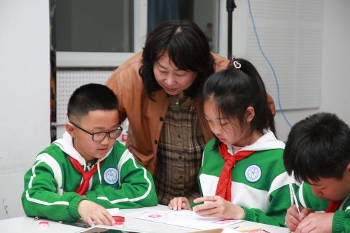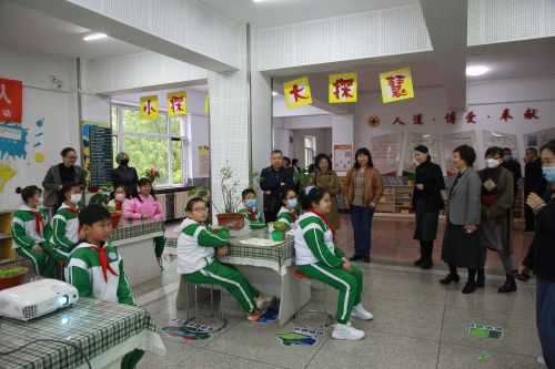 調(diào)研組一行5人在那麗娟校長的帶領(lǐng)下,先后參觀了“智慧五育”理念下的校園文化建設(shè),在學(xué)生自主管理的智慧圖書館,藝術(shù)創(chuàng)作基地,勞動實踐基地等實踐場域,調(diào)研人員駐足觀看,與學(xué)生進行了交流互動。隨后,調(diào)研組觀摩了一節(jié)以篆刻為主題的勞動課,大家饒有興趣的與學(xué)生一道參與到篆刻活動中,同時與學(xué)生進行了深入的溝通,對學(xué)生沉浸于動手實踐活動頗有感觸。在接下來的大課間的展示活動中,調(diào)研人員不僅看到了學(xué)生展示出的扎實的籃球基本功,更看到了學(xué)生面帶笑容,積極投入運動的激情,大家紛紛表示,學(xué)生能夠生活在這樣充滿活力的校園,是何其幸福!