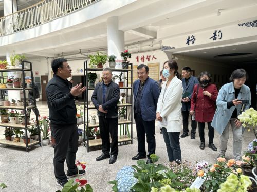 調(diào)研組首先參加了學(xué)校基于美育和勞動教育開展的實(shí)踐活動——賞花節(jié),跟隨郭建軍校長參觀了學(xué)校的校史館、體育館、工會之家,聆聽了學(xué)生樂器演奏,觀看了學(xué)校芭蕾舞社團(tuán)訓(xùn)練,欣賞了學(xué)校別具特色的書法展覽,在操場上觀看了學(xué)校大課間活動。