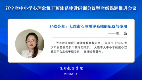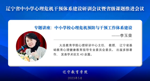 近期,在遼寧教育學(xué)院組織開展的《遼寧省中小學(xué)心理危機干預(yù)體系建設(shè)研訓(xùn)會議暨省級課題推進(jìn)》會議上,大連教育學(xué)院心理研訓(xùn)中心主任李玉榮教授和周茹老師分別受邀作專題報告和經(jīng)驗分享。
