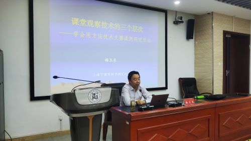 5月12日上午,大連市50名小學研訓教師聆聽了本次研修活動的最后一場學術(shù)報告,圓滿完成此次領(lǐng)雁工程的研修學習。報告由上海市教育科學研究院教師發(fā)展研究中心楊玉東主任帶來,主題為《課堂觀察技術(shù)的三個層次——學會用方法技術(shù)支撐課例研究活動》,主要圍繞課例研究的內(nèi)涵、在課例研究中應(yīng)用課堂觀察技術(shù)的一般流程及課堂記錄、診斷、評價的技巧等三個方面展開。楊主任在課例研究的四元分析框架下,結(jié)合數(shù)學課堂案例,重點介紹了學生語言流動記錄和學生學習狀態(tài)記錄的方法,精彩詮釋了在新課標背景下以遵循證據(jù)、循環(huán)改進為特點的課例研究的可操作性路徑。