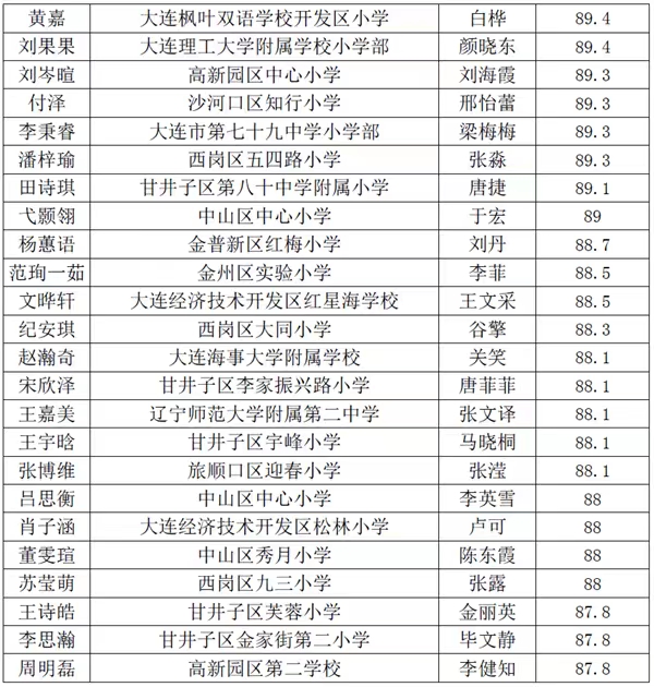 大連市第二十六屆"楓葉杯"演講比賽小學(xué)組的復(fù)賽已經(jīng)圓滿(mǎn)落下帷幕,現(xiàn)將小學(xué)組比賽結(jié)果公布如下:
