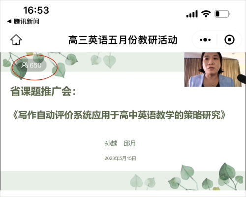 本次活動共分成三個(gè)部分:第一部分是成績分析。大連教育學(xué)院高中中心英語研訓(xùn)教師孫越老師結(jié)合數(shù)據(jù)對雙基、一模、二模試卷命制的目的,考點(diǎn)和暴露出的問題進(jìn)行了再次梳理,幫助老師們明確最后階段高三復(fù)習(xí)的重點(diǎn)和解決的辦法。第二部分,鐵路中心教研組組長兼高三備課組組長陳詞老師做《如何做好高考最后沖刺》的講座。陳老師結(jié)合本校學(xué)情,認(rèn)真布置了高考前最后三周的教學(xué)內(nèi)容和復(fù)習(xí)策略。陳老師務(wù)實(shí)嚴(yán)謹(jǐn)?shù)墓ぷ髯黠L(fēng)給所有的老師留下了深刻的印象。第三部分是省課題推廣。首先孫越老師面向所有高三老師將其帶領(lǐng)團(tuán)隊(duì)在2017年至2022年完成的遼寧省教研科學(xué)規(guī)劃立項(xiàng)課題《寫作自動評價(jià)系統(tǒng)應(yīng)用于高中英語教學(xué)的策略研究》進(jìn)行了全面介紹。內(nèi)容重點(diǎn)理論層面介紹了課題研究背景,國內(nèi)外研究現(xiàn)狀、高中教學(xué)現(xiàn)狀和具體的教學(xué)策略。然后瓦房店八中的邱月老師重點(diǎn)從實(shí)踐層面介紹了她所任教班級使用寫作自動評價(jià)系統(tǒng)的經(jīng)歷、感受和收獲。該課題對當(dāng)下高考作文比重大,批改困難提出了有效的解決方案,得到了受到了老師們的積極肯定和持續(xù)關(guān)注。