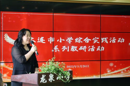 活動(dòng)伊始,謝田軍副局長(zhǎng)致辭。他感謝大連教育學(xué)院藝體勞研訓(xùn)中心將工作室設(shè)置在龍泉小學(xué),這是對(duì)龍泉小學(xué)一直以來推進(jìn)綜合實(shí)踐活動(dòng)課程扎實(shí)落地的肯定,也是對(duì)甘井子區(qū)深化課程改革、堅(jiān)持五育并舉全面發(fā)展素質(zhì)教育的重視與支持。同時(shí)希望參加此次活動(dòng)的所有學(xué)校能深刻領(lǐng)會(huì)本次會(huì)議的精神,繼續(xù)開展多元化綜合實(shí)踐活動(dòng)課程;希望強(qiáng)化變革育人方式,突出實(shí)踐,倡導(dǎo)做中學(xué)、用中學(xué)、創(chuàng)中學(xué);希望堅(jiān)持開展跨學(xué)科學(xué)習(xí),強(qiáng)化課程協(xié)同育人功能,注重培養(yǎng)學(xué)生在真實(shí)情境中解決問題的能力。