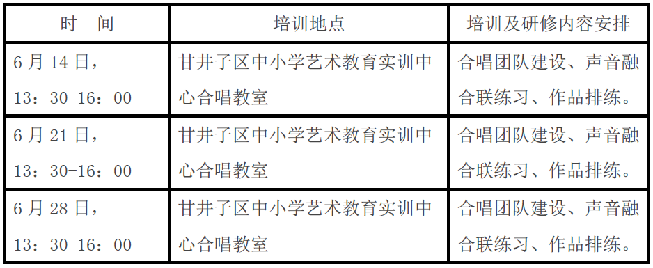 為貫徹落實(shí)中共中央辦公廳、國(guó)務(wù)院辦公廳《關(guān)于全面加強(qiáng)和改進(jìn)新時(shí)代學(xué)校美育工作的意見》和中共遼寧省委辦公廳、遼寧省人民政府辦公廳印發(fā)《遼寧省全面加強(qiáng)和改進(jìn)新時(shí)代學(xué)校美育工作若干措施》精神,進(jìn)一步落實(shí)立德樹人的根本任務(wù),提高音樂教師專業(yè)素養(yǎng)和教育教學(xué)能力,提升音樂教育研究和課堂教學(xué)質(zhì)量,提高學(xué)生的審美及人文素養(yǎng),大連市“中小學(xué)藝術(shù)特色項(xiàng)目專項(xiàng)研訓(xùn)”項(xiàng)目組擬于2023年6月繼續(xù)舉辦中小學(xué)音樂教師合唱教學(xué)能力提升培訓(xùn)。