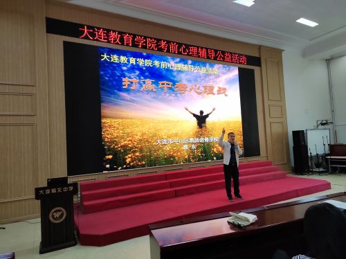 為了緩解學(xué)生們考前緊張的情緒,以積極健康的心態(tài)應(yīng)對考試,5月27日下午大連教育學(xué)院考前心理輔導(dǎo)專家團隊袁東老師為大連育文中學(xué)教育集團五郡、魅力兩個校區(qū)的初三學(xué)生進行了專題培訓(xùn)。