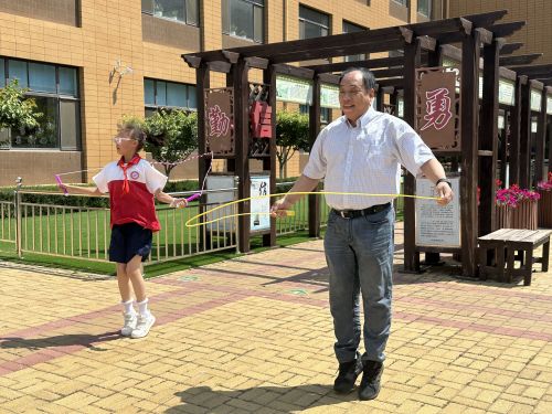 本次活動(dòng)分室外、室內(nèi)兩個(gè)部分。室外部分,觀摩了廣福小學(xué)校園體育文化和大課間活動(dòng)展示,學(xué)校充分開發(fā)了體育場地設(shè)施資源和課程內(nèi)容資源,校園處處彰顯了體育元素。學(xué)校分區(qū)域設(shè)置了籃球、排球、足球、輪滑、獨(dú)輪車、高爾夫球、花樣跳繩、羽毛球等8個(gè)項(xiàng)目,學(xué)生根據(jù)自身興趣愛好及年齡特點(diǎn),選擇適合自身發(fā)展的項(xiàng)目進(jìn)行學(xué)、練、賽。尊重學(xué)生的個(gè)體差異,促進(jìn)學(xué)生個(gè)性發(fā)展。值得一提是,在跳繩區(qū)域的展示中,袁局長與學(xué)生完成一分鐘挑戰(zhàn)賽,進(jìn)一步激勵(lì)了學(xué)生參與運(yùn)動(dòng)的熱情。