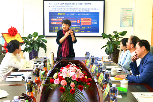在主題研修中,工作室特聘專家導(dǎo)師李鳳榮圍繞工作室研修課題"落實課程標(biāo)準(zhǔn),培養(yǎng)核心素養(yǎng)"進行了專題講座。她列舉相關(guān)實例,深入淺出解讀了"新課標(biāo)理念之新"的五個維度--基于未來教育觀的課程理念;基于核心素養(yǎng)觀的課程目標(biāo);基于理解性教學(xué)觀的課程內(nèi)容;基于跨學(xué)科學(xué)習(xí)觀的課程組織;基于表現(xiàn)性評價觀的課程評價。